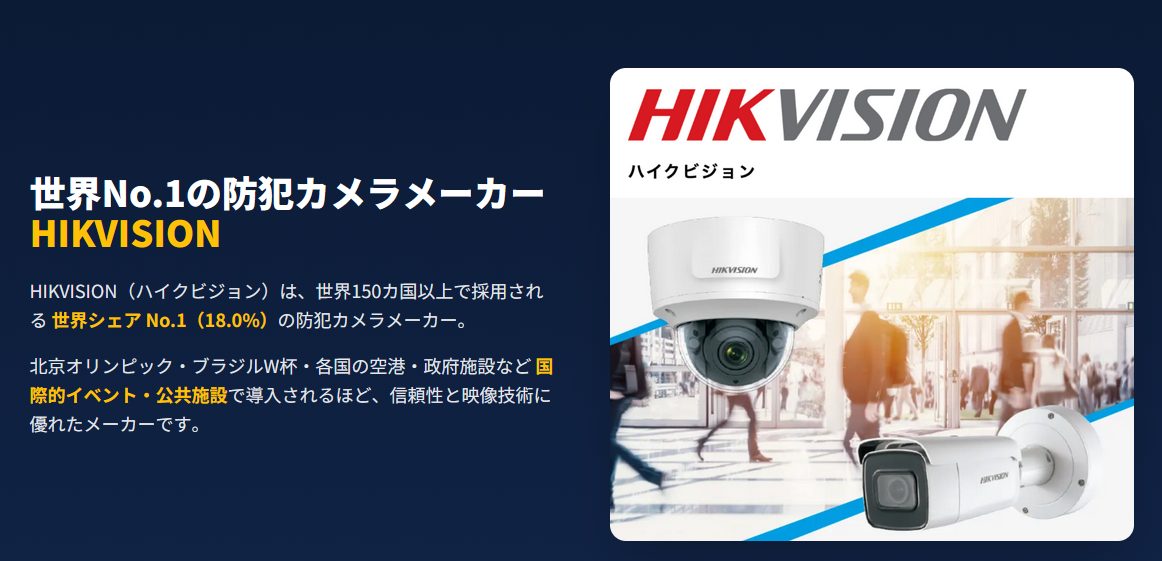 HIKVISIONは、世界150以上の国と地域で採用されている、名実ともに世界シェアNo.1の防犯カメラメーカーです。