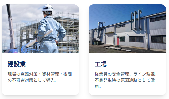- 飲食店・小売店: レジ周りのトラブル防止や客席の状況把握に。