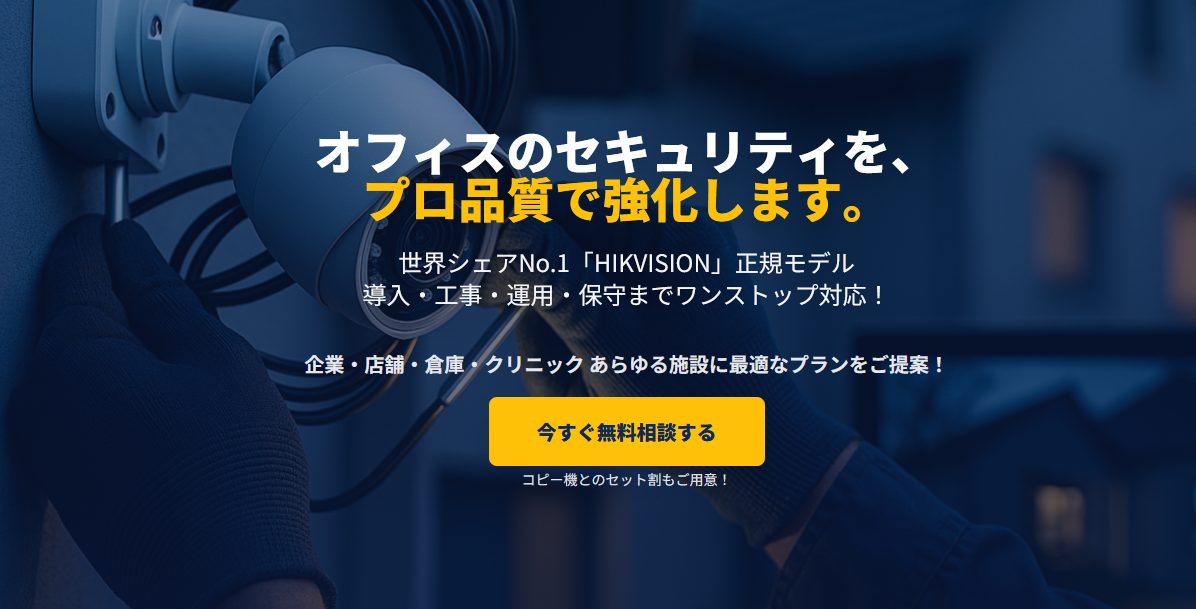 世界No.1ブランド「HIKVISION」の信頼性と、最短当日調査・2,000件の実績を持つコピー機王国の技術力。