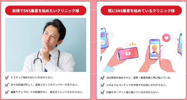 無理なSNS運用は、スタッフを疲弊させ、最悪の場合は離職を招きます。そんな不幸な結果にならないために、まずは医療業界を熟知したプロの目線を取り入れてみてください。